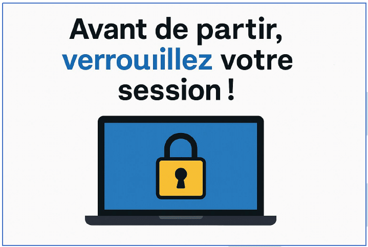 Pour garantir la sécurité de nos données et éviter tout accès non autorisé, il est indispensable de verrouiller ou fermer votre session lorsque vous quittez votre poste, même pour quelques minutes.